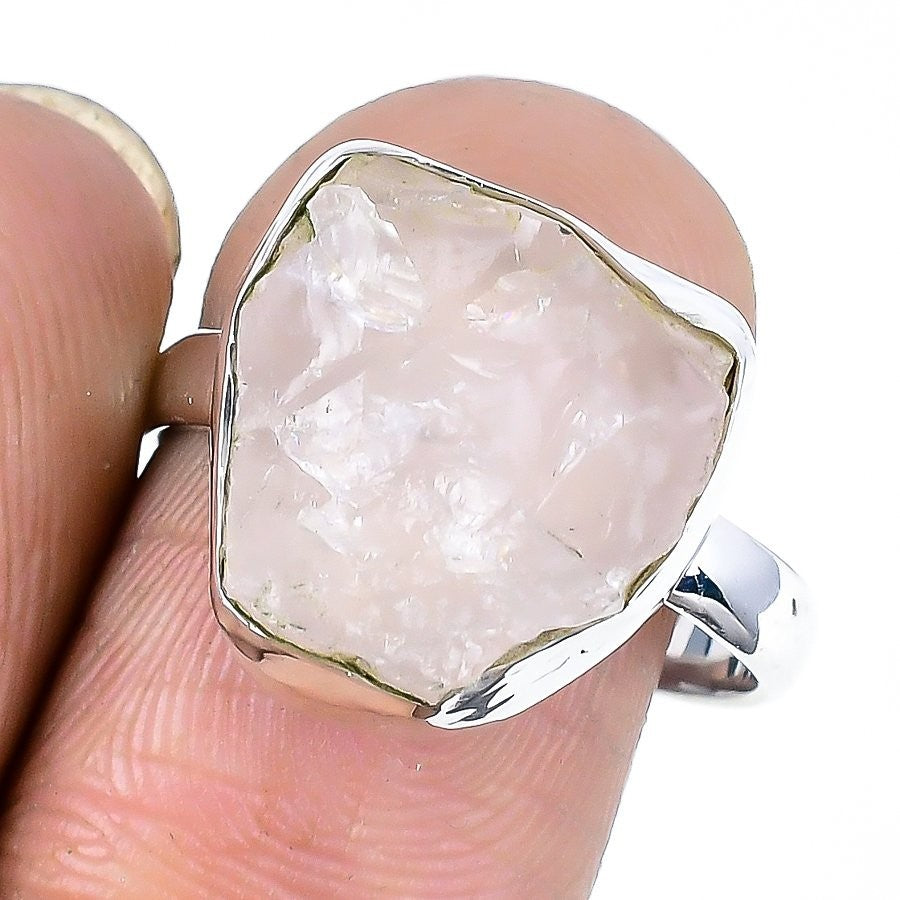 Rose Quartz Druzy Stone Sterling Silver Artisan Statement Ring Jewelry Size 9.5