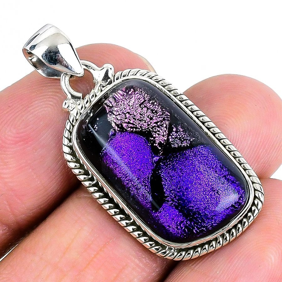 Mexican Dico Glass Gemstone 925Ā SolidĀ Silver Mother Handcrafted Pendant Jewelry