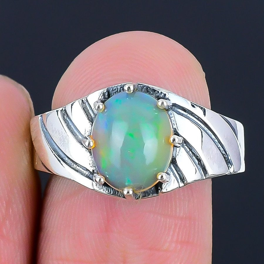 Natural Ethiopian Opal 925Ā SolidĀ Silver Cluster Daughter Anniversary Ring Size 7