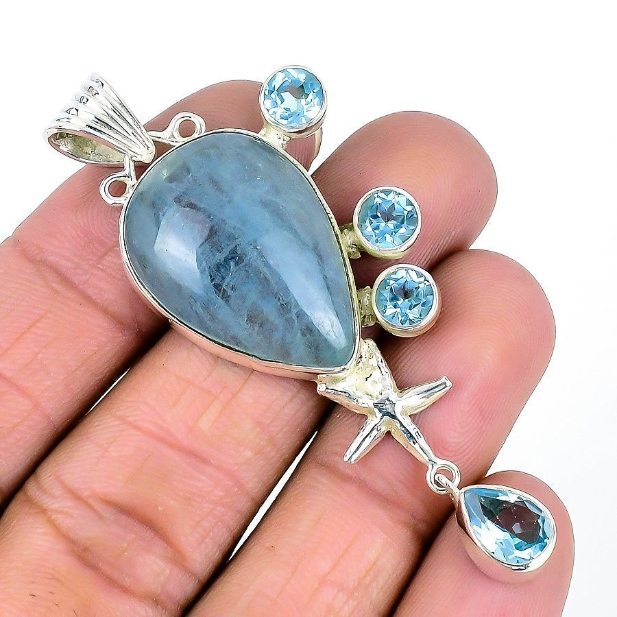 March Birth Aquamarine Stone 925 Sterling Silver Daughters Day Pendant Jewelry