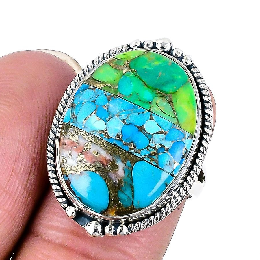 Schelen Blend Stone Solid Sterling Silver Statement Boho Ring Jewelry Size 7.5