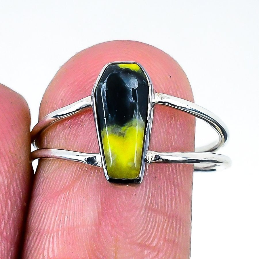 Bumblebee Jasper Gemstone Solid Silver Elegant Unique Boho Band New Ring US 8.5