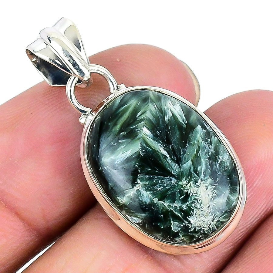 Seraphinite Stone Solid Sterling Silver Daughters Day Engagement Sister Pendant