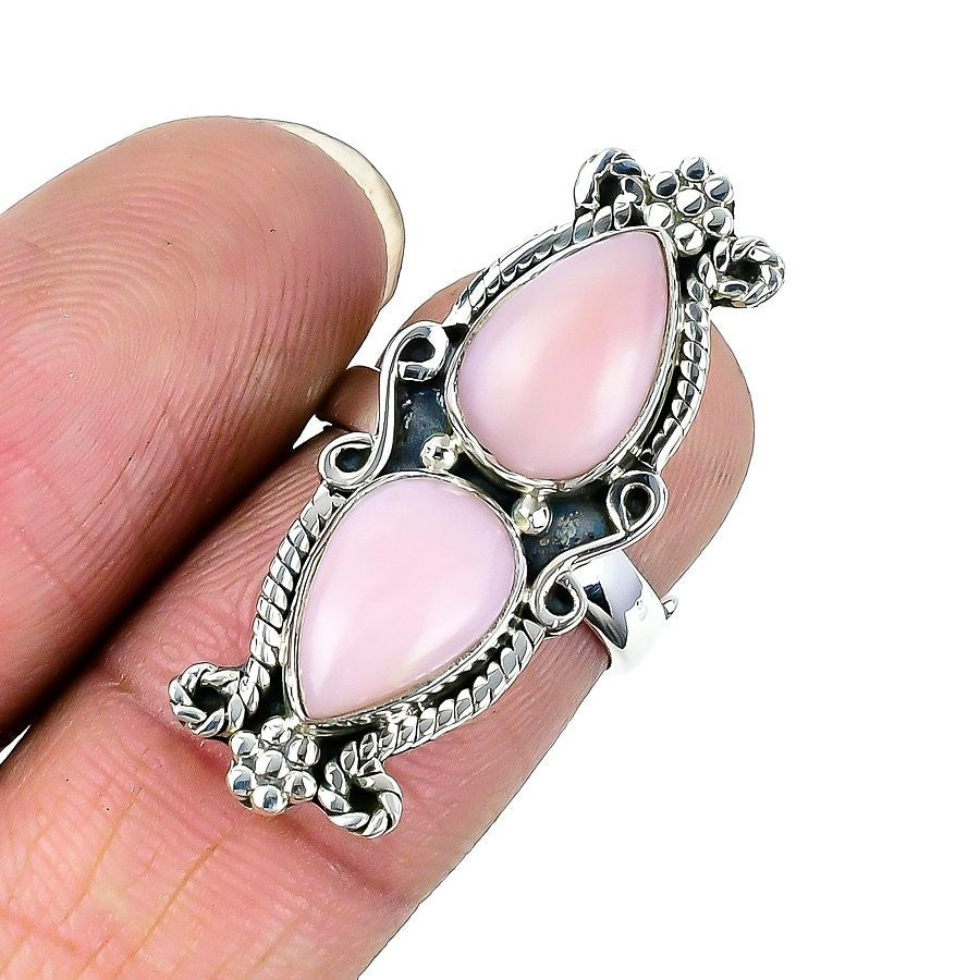Pink Opal Stone Sterling Silver Daughters Day Statement Trendy Boho Mother Ring