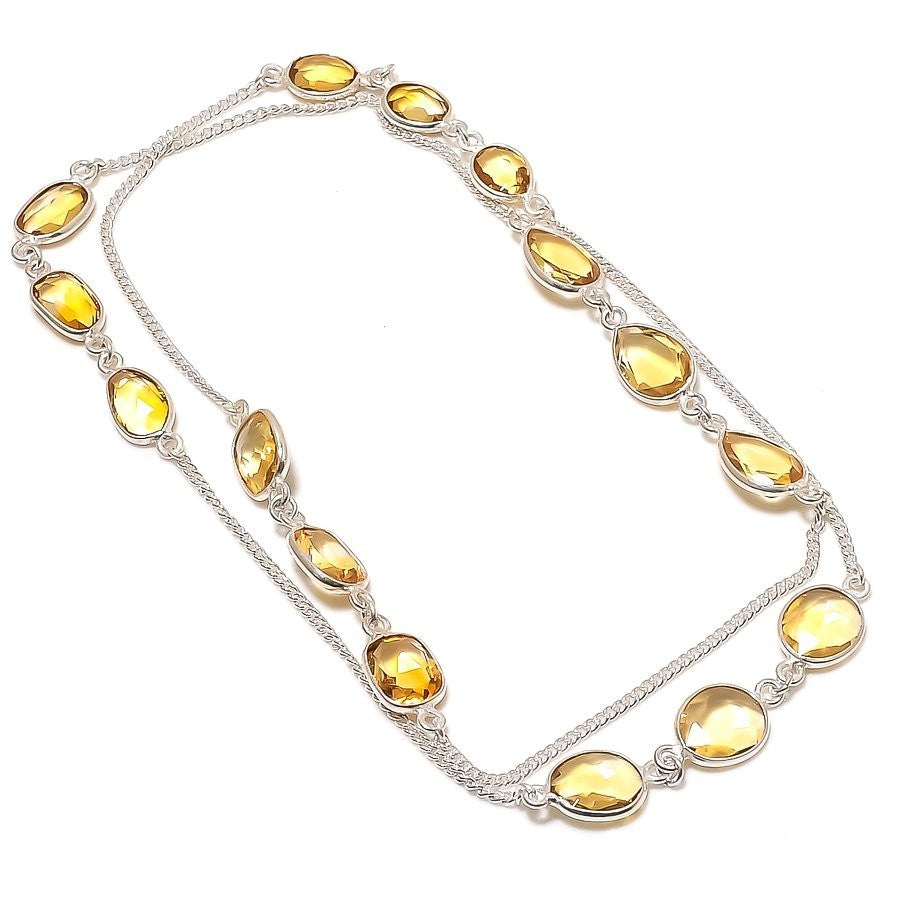 Natural Citrine 925 Sterling Silver Sister November Chain Channel Set Necklace