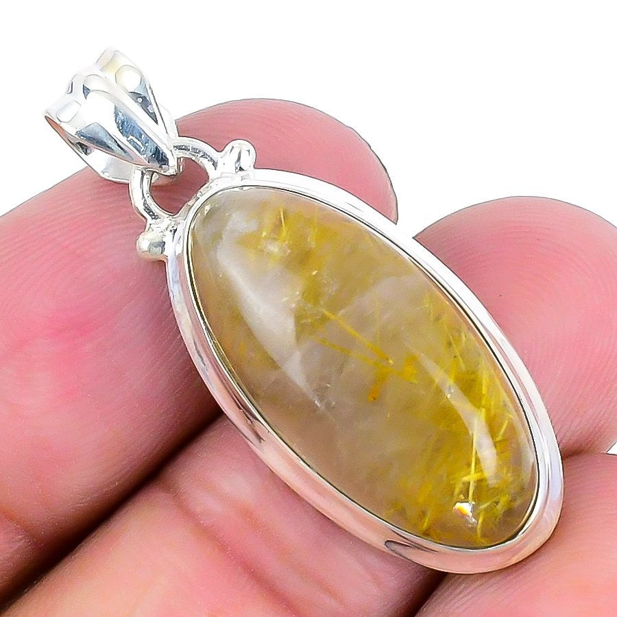 Golden Rutile Gemstone Solid Sterling Silver Anniversary Trendy Pendant Jewelry
