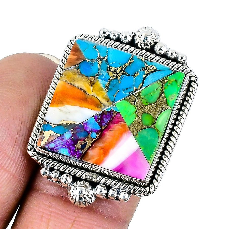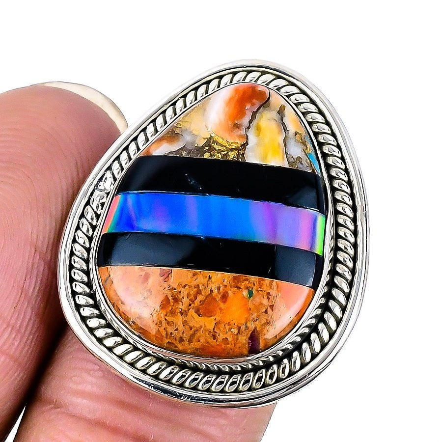 Spiny Oyster Matrix Gemstone 925 Sterling Silver Statement Ring Jewelry US 10