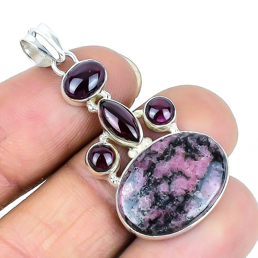 Rhodonite Gemstone Artisan Engagement Unique Handcrafted Pendant Sterling Silver