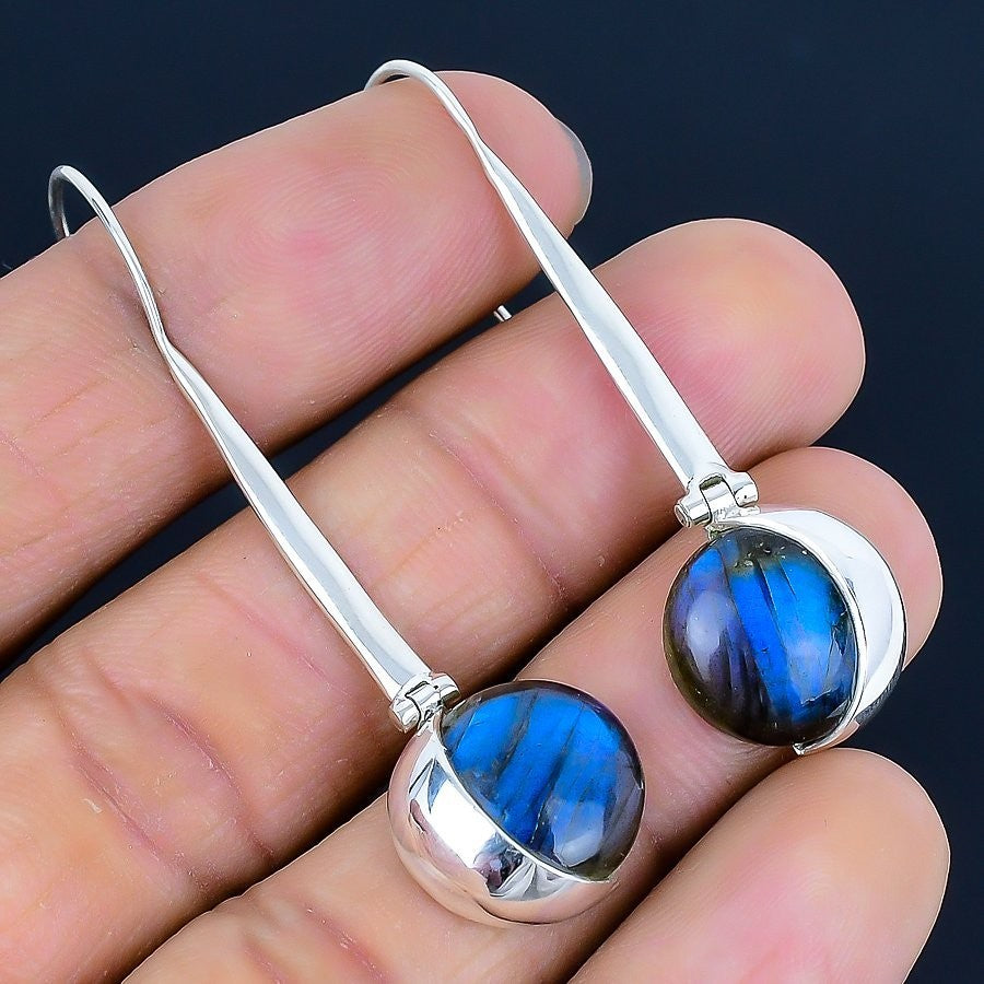 Third Eye Chakra Labradorite Gemstone Hook Boho Dangle New Earrings Solid Silver