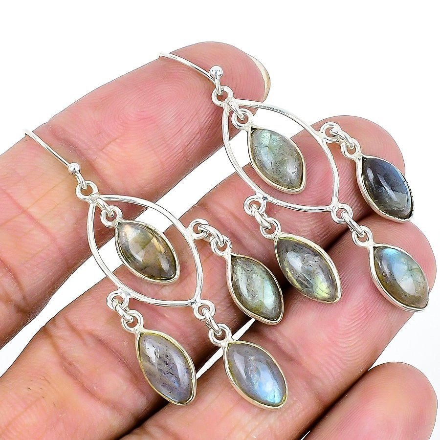 Natural Labradorite Sterling Silver Boho Dangling Hook Daughter Earrings Jewelry