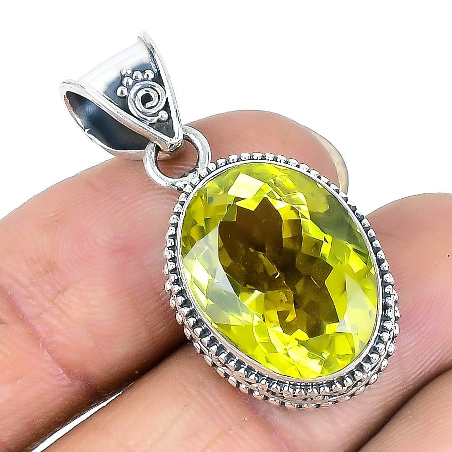 Lemon faceted Stone Solid Silver Mother Artisan Engagement Daughters Day Pendant