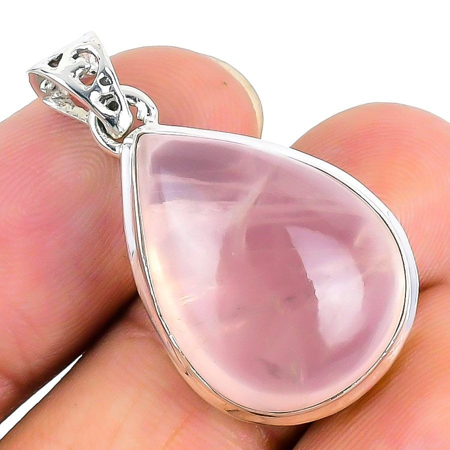 Rose Quartz Stone Solid Sterling Silver Best Daughters Gift Engagement Pendant