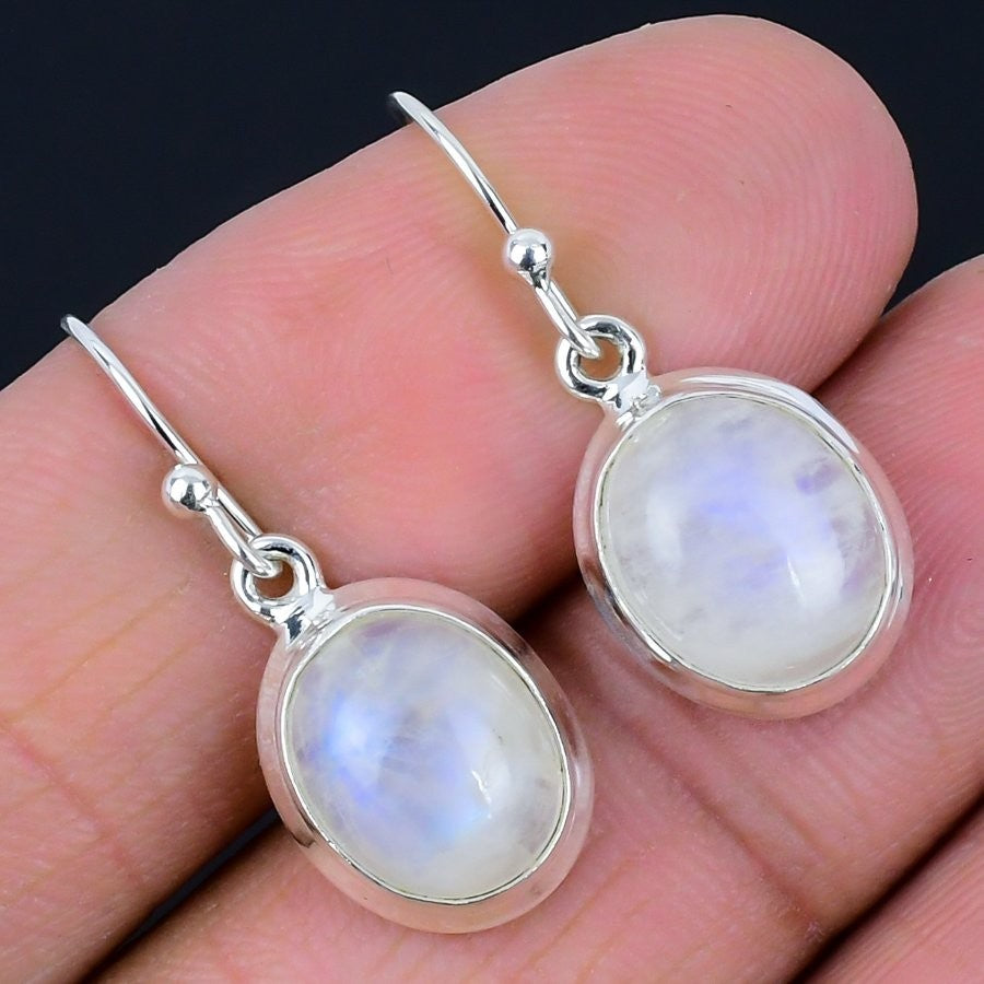 Rainbow Moonstone Gemstone Sterling Silver Dangle Drop Daughter Earrings Jewelry