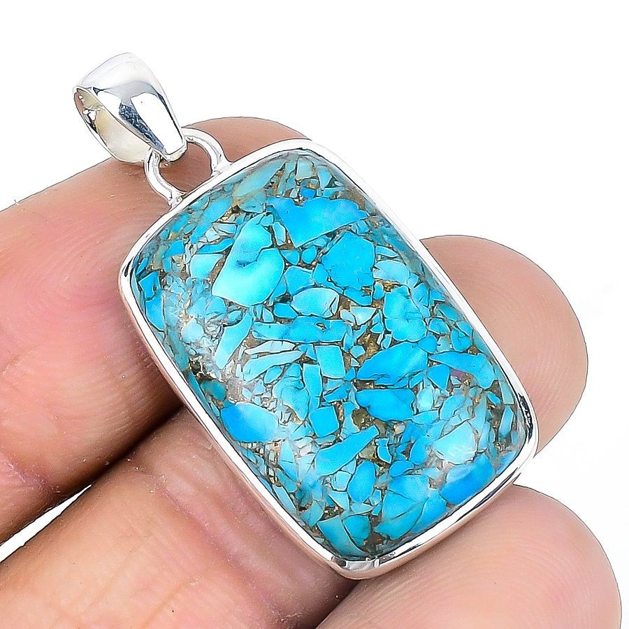 Daughters Day Sale Copper Blue Turquoise Gemstone New Pendant Jewelry 925 Silver