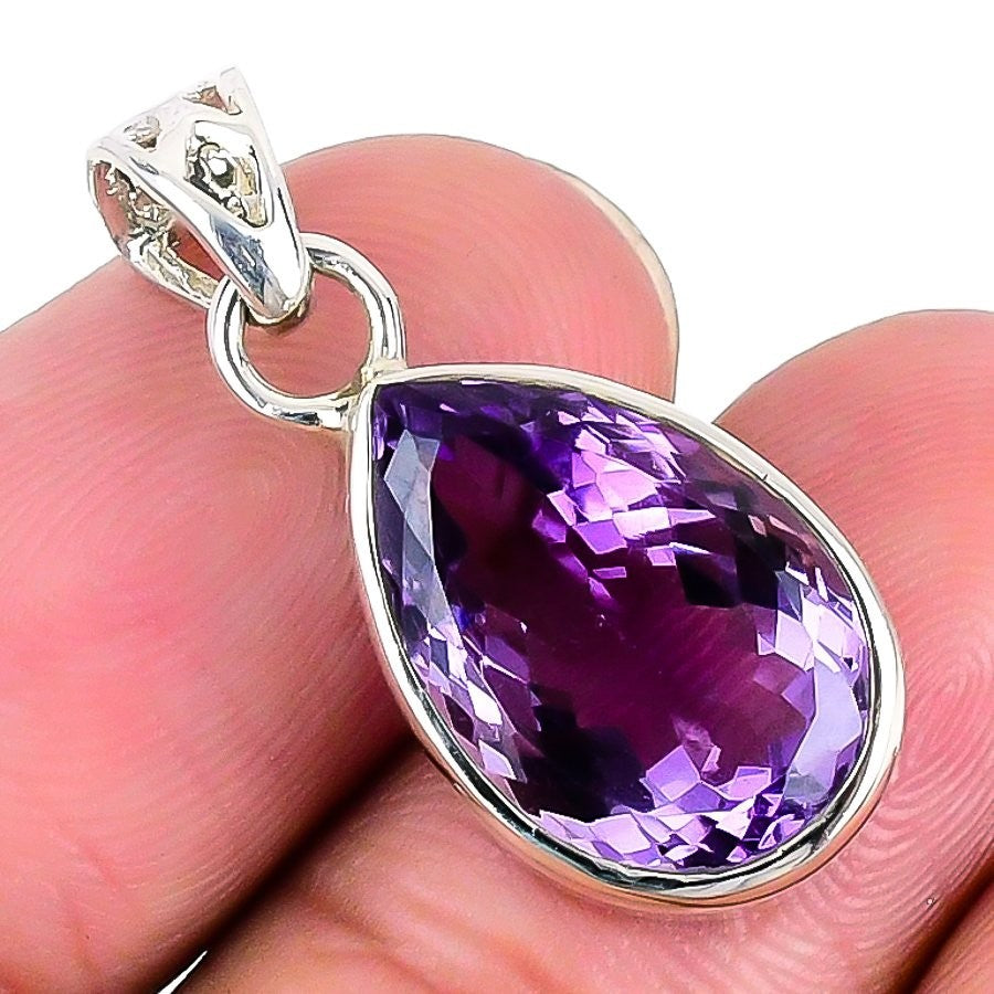 Amethyst Stone Bezel Handcrafted Mother February Birth New Pendant Solid Silver