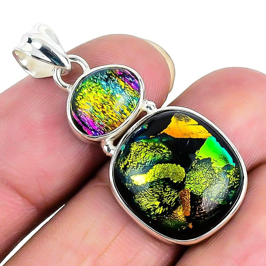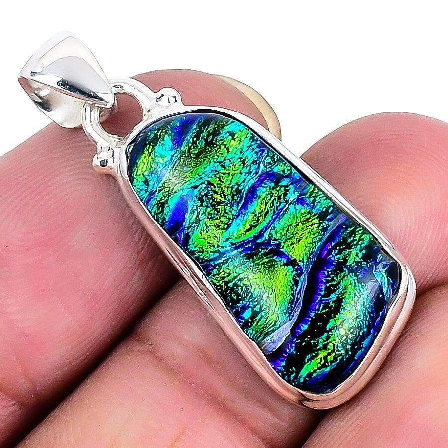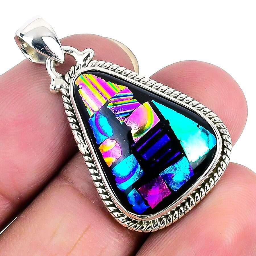 Memorial Day Sale Mexican Dico Glass Gemstone Solid Silver Anniversary Pendant
