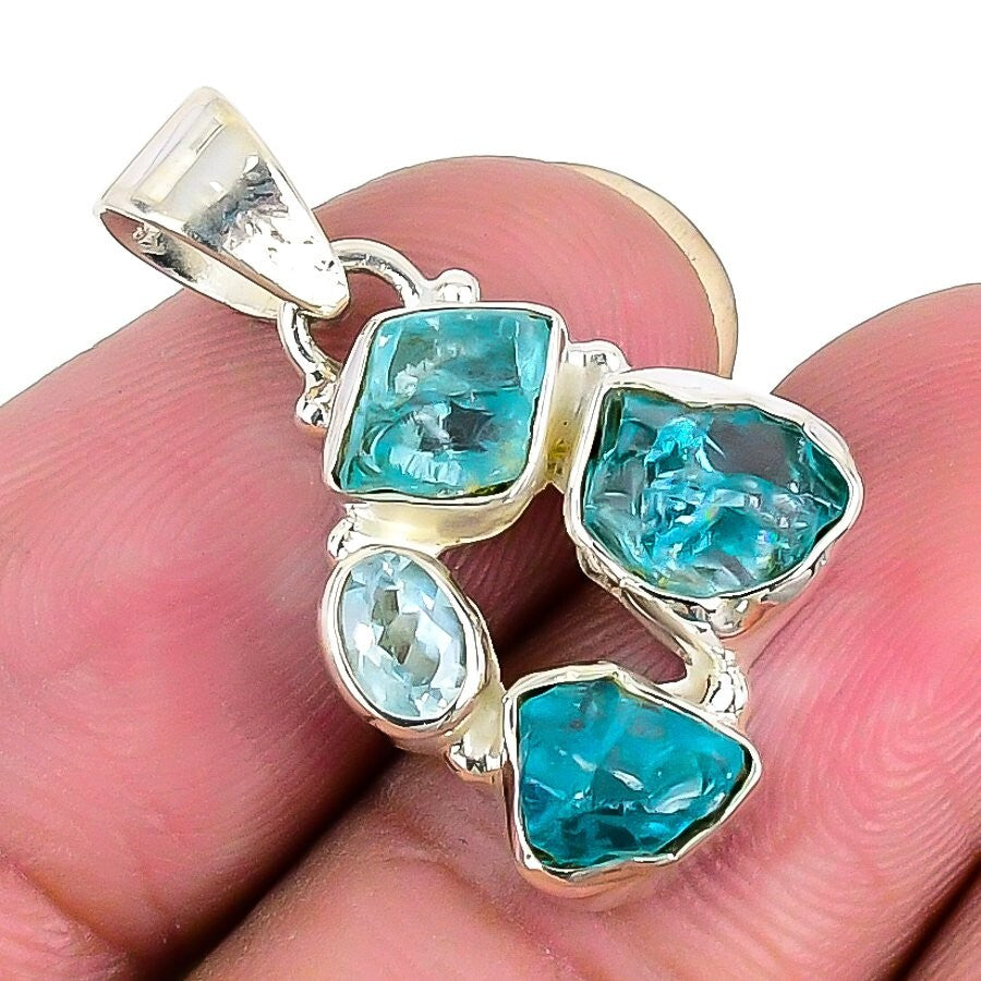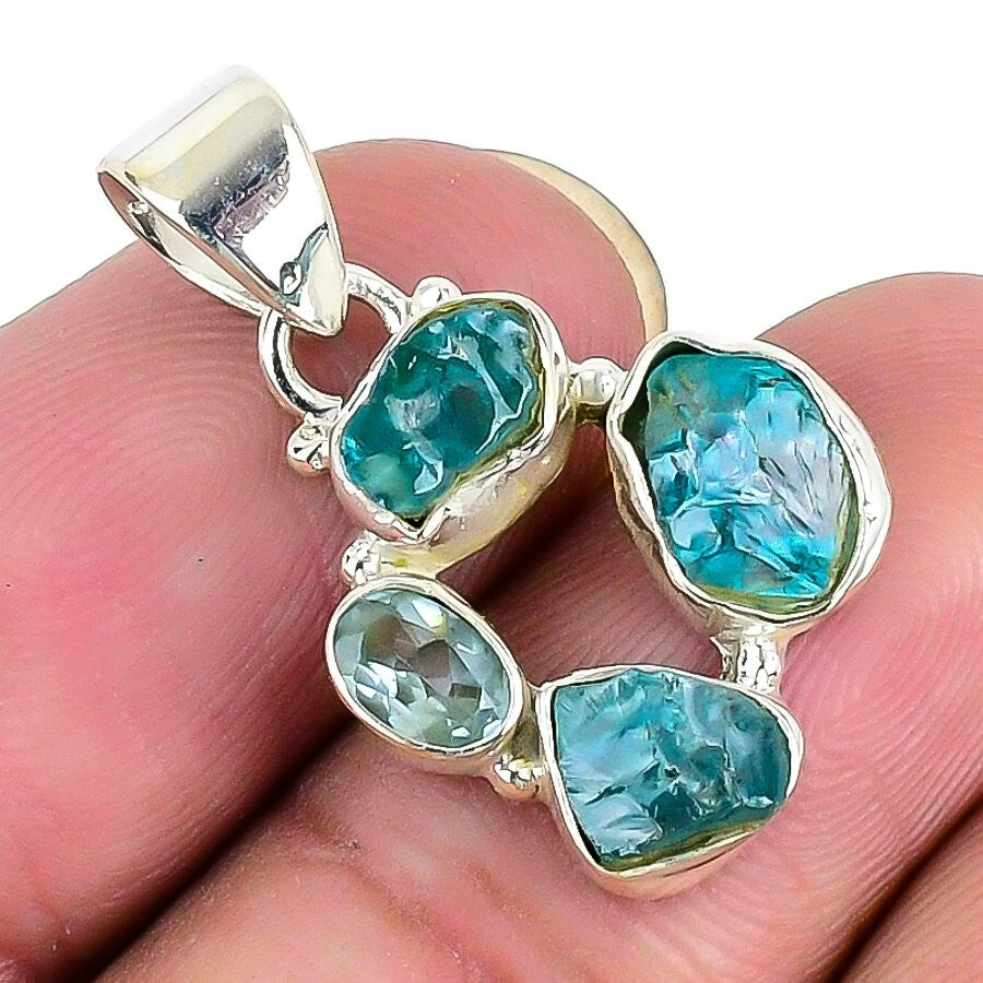 Blue Apatite Stone Sterling Silver Engagement Ethnic Sister New Pendant Jewelry