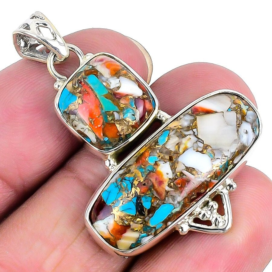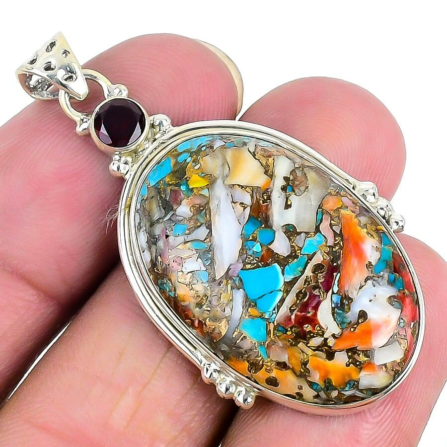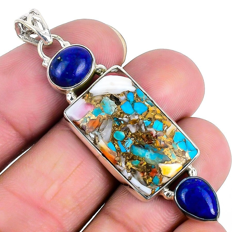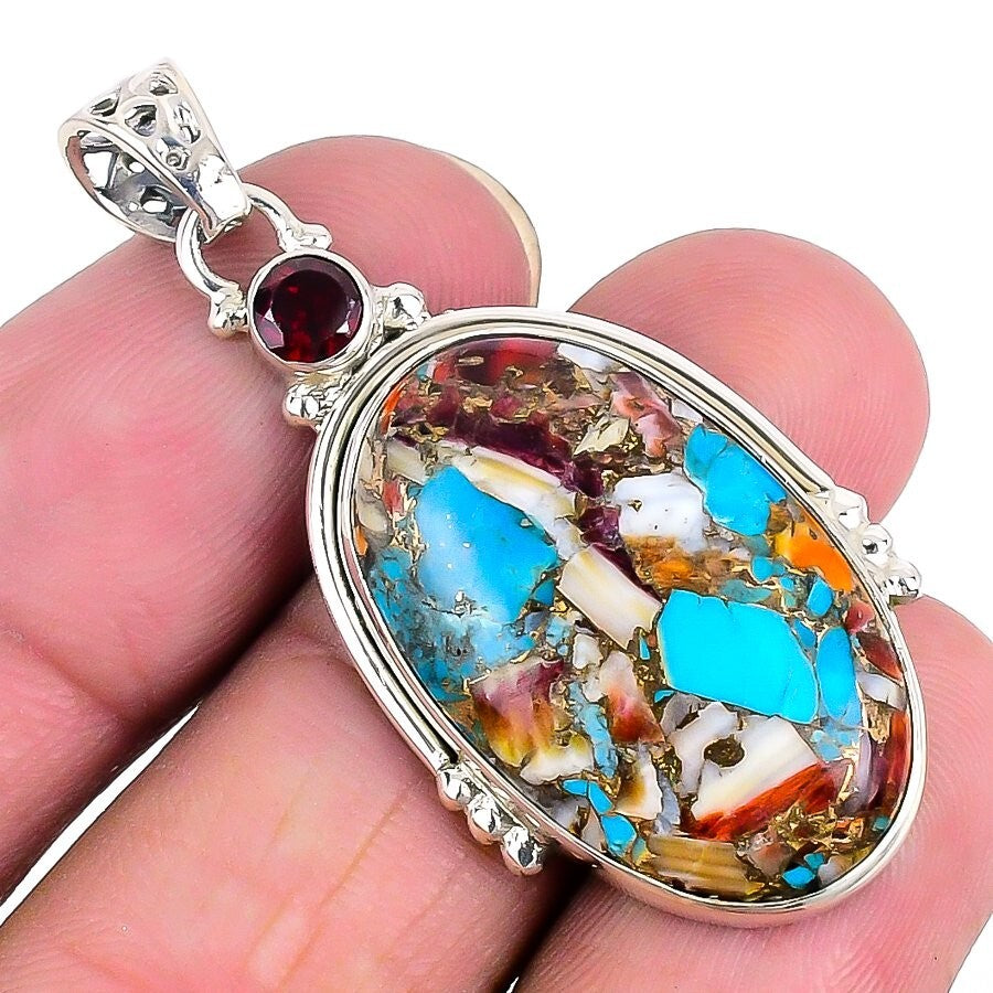 Spiny Oyster Turquoise Gemstone Solid Sterling Silver Trendy New Pendant Jewelry