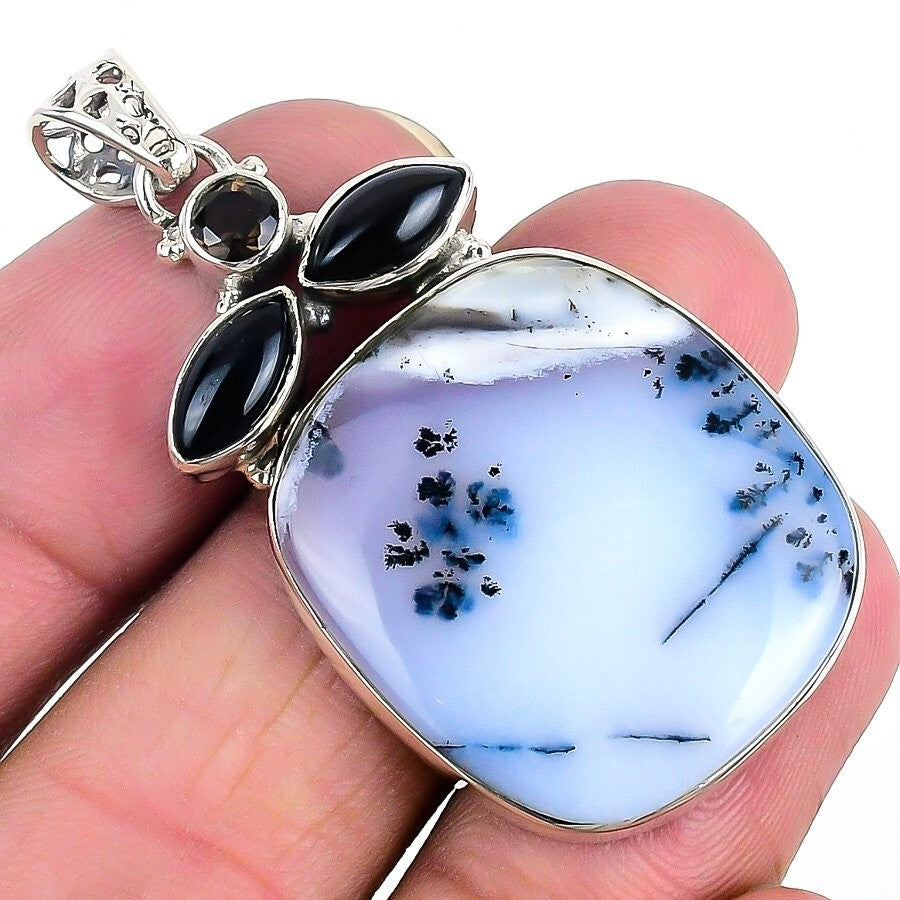 Natural Dendrite Opal Birthday Anniversary Pendant Jewelry 925 Sterling Silver