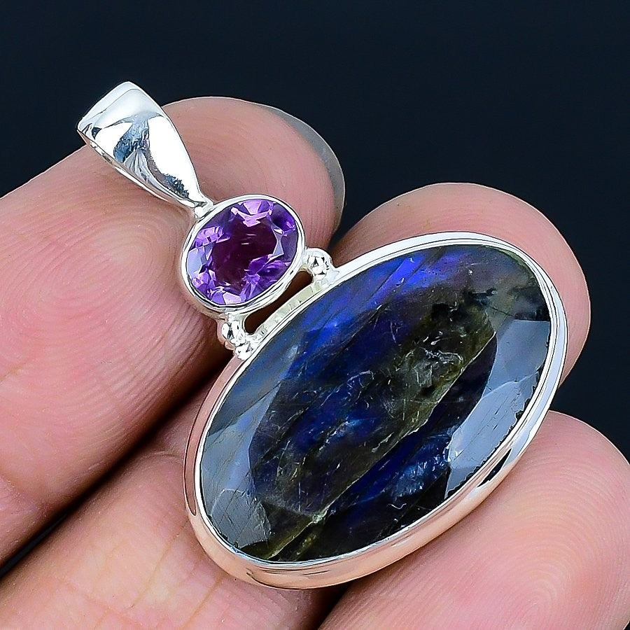 Labradorite Stone 925 Silver Third Eye Chakra Wedding Boho Wife Pendant Jewelry