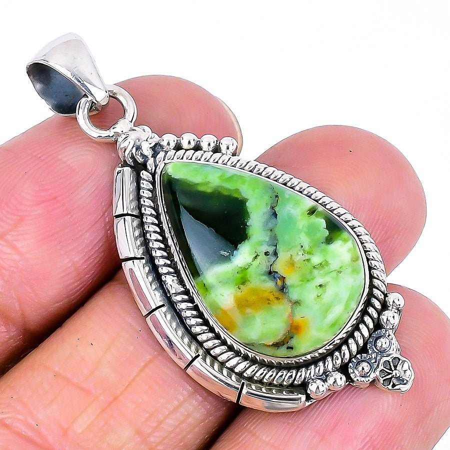 Chrome Chalcedony Stone 925Ā SolidĀ Silver Wedding Daughter Gift Pendant Jewelry