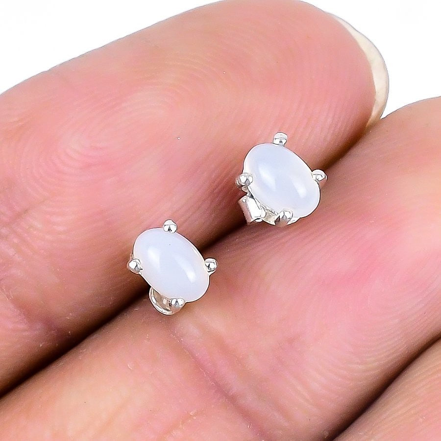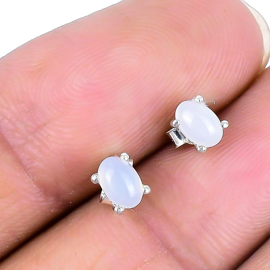 Crown Chakra Selenite Gemstone Sterling Silver Sister Stud Post Earrings Jewelry