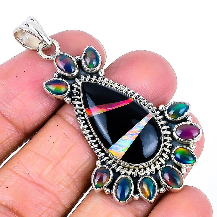 Aura Opal Composite Gemstone Solid Silver Daughters Day Trendy Pendant Jewelry