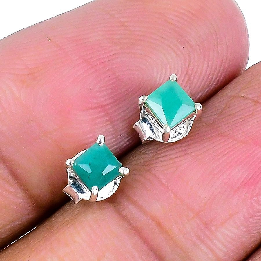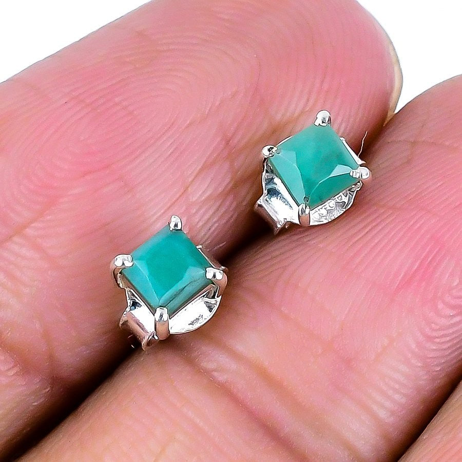 Emerald Faceted Stone Stud Post Anniversary Daughters Day Earrings Solid Silver