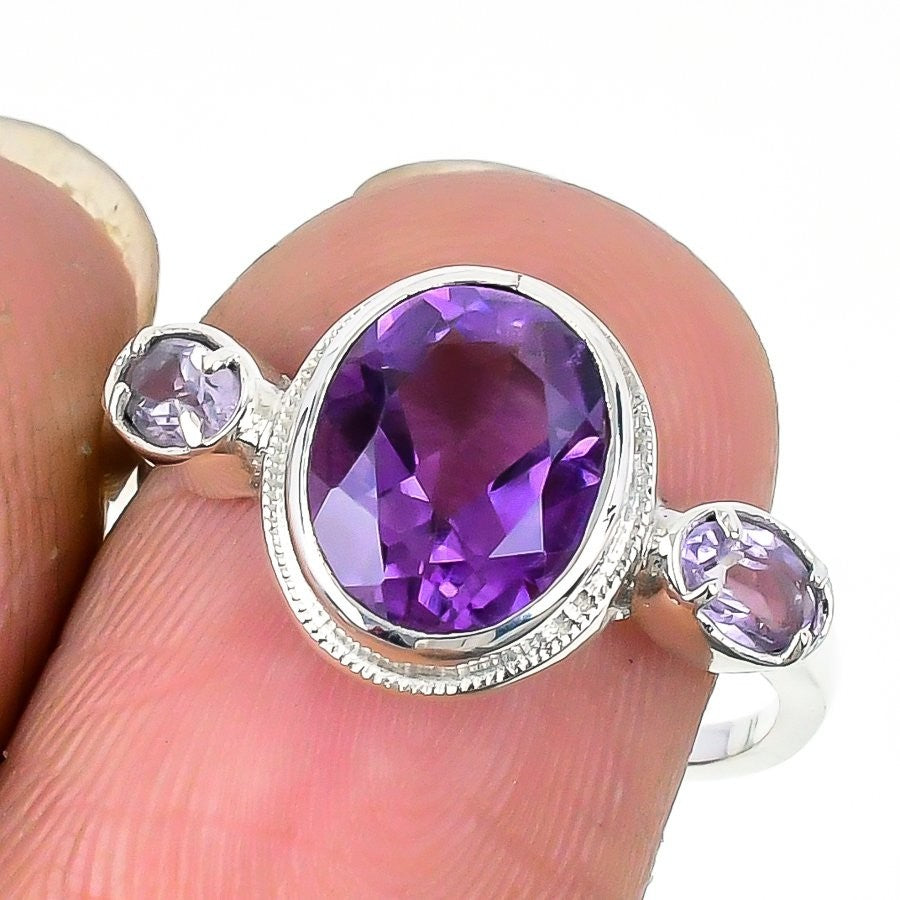 Natural Amethyst Faceted 925 Sterling Silver Birthday Statement New Ring Size 10