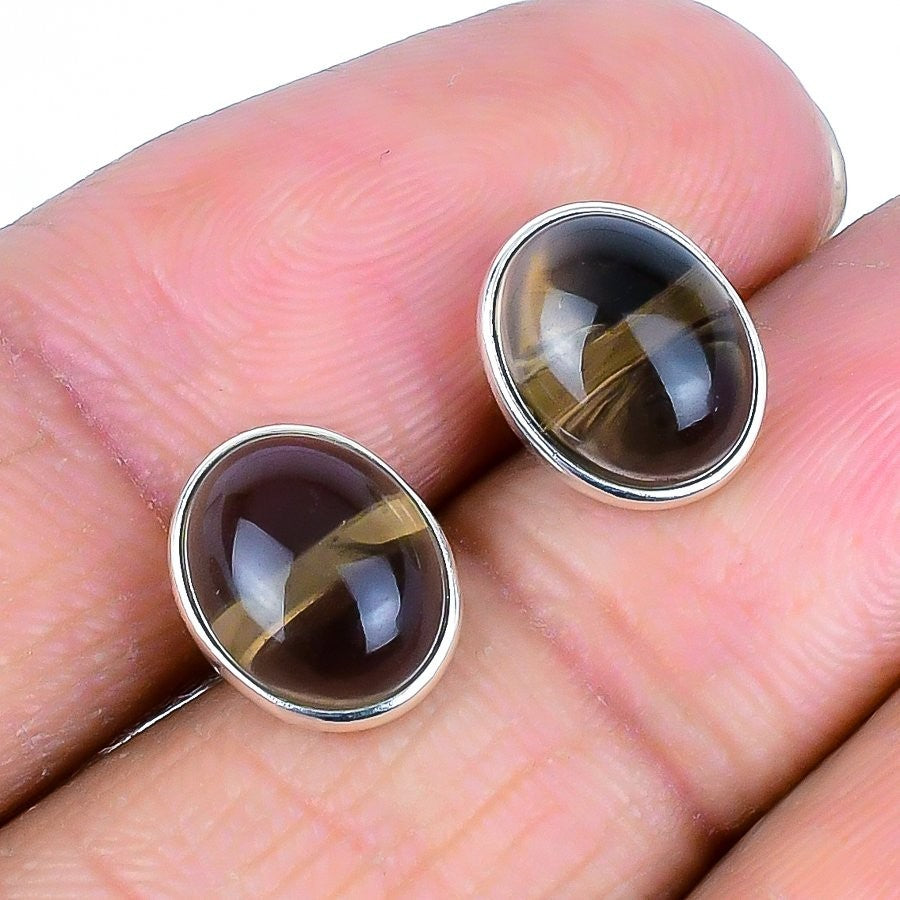 Daughters Day Sale Smoky Topaz Stone Wife Stud Earrings Jewelry 925Ā SolidĀ Silver