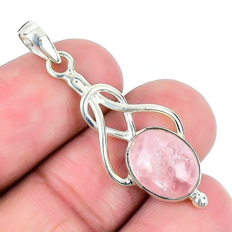 Rose Quartz Gemstone Mother Daughter Gift Ethnic Pendant Jewelry Sterling Silver