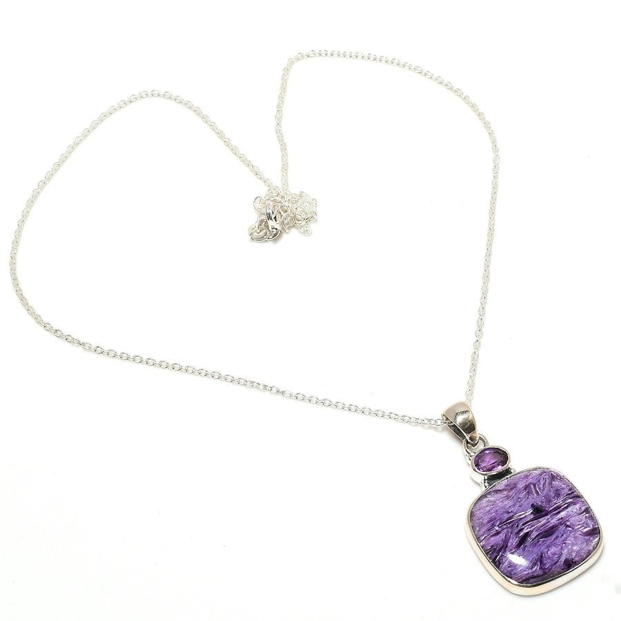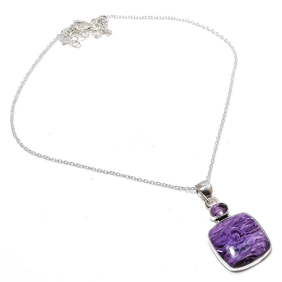 Daughters Day Sale Natural Russian Charoite Solid Silver Chain Necklace Jewelry