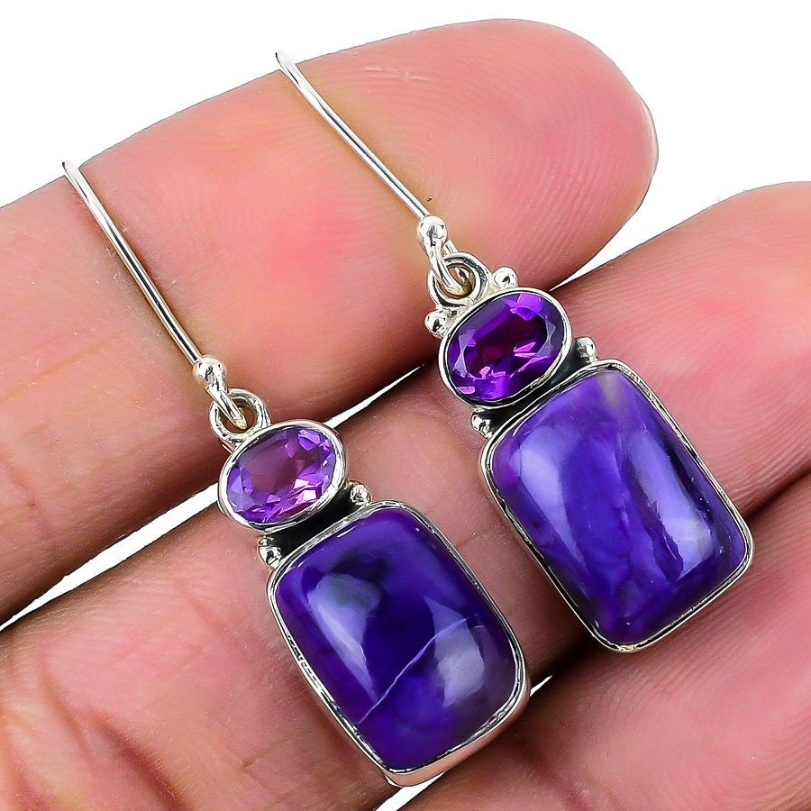 Daughters Day Sale Natural Russian Charoite Dangle Earrings Jewelry 925 Silver