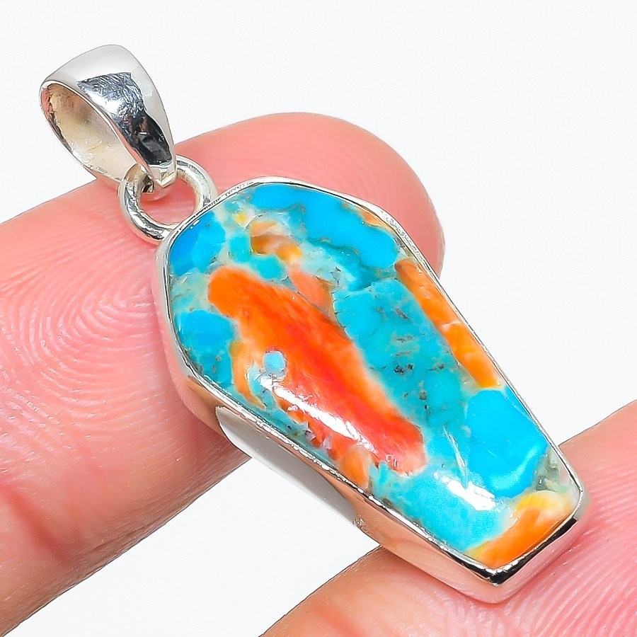 Spiny Oyster Stone Solid Sterling Silver Mother Anniversary Boho Pendant Jewelry