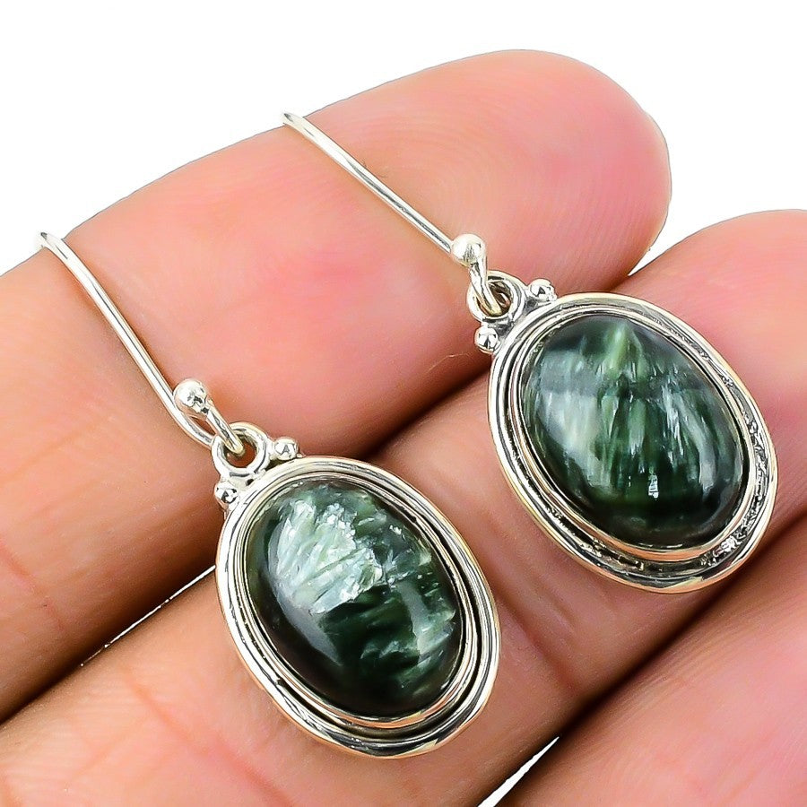 Seraphinite Gemstone Sterling Silver Birthday Art Deco Dangling Earrings Jewelry
