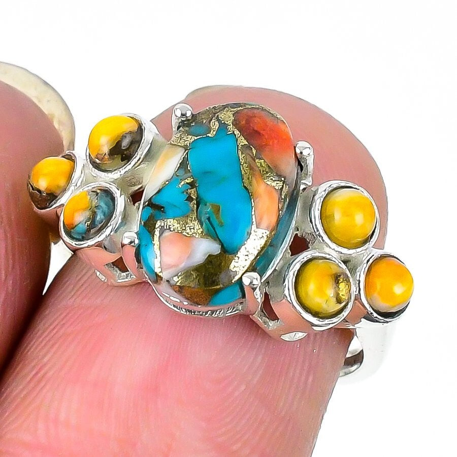 Spiny Oyster Stone Sterling Silver Statement Anniversary Engagement Ring US 7