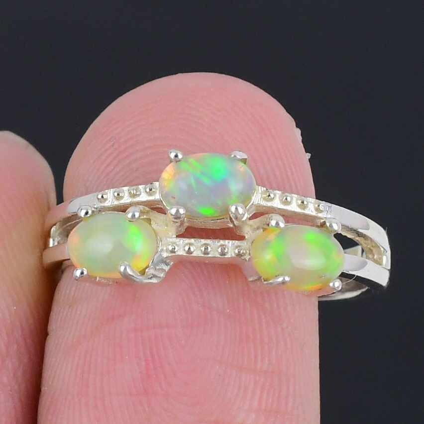 Natural Ethiopian Opal 925 Silver Cluster Sister Engagement Art Deco New Ring