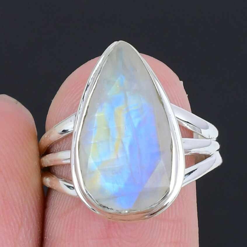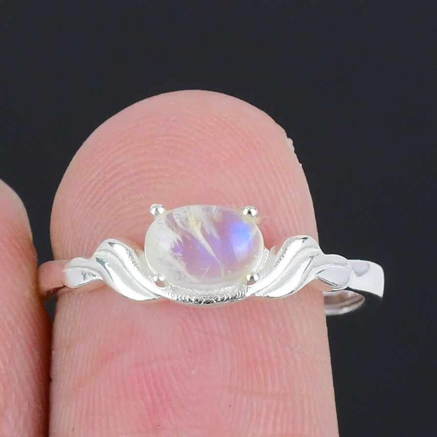 Rainbow Moonstone Stone Cluster Daughter New Ring Jewelry Size 7.5 Solid Silver