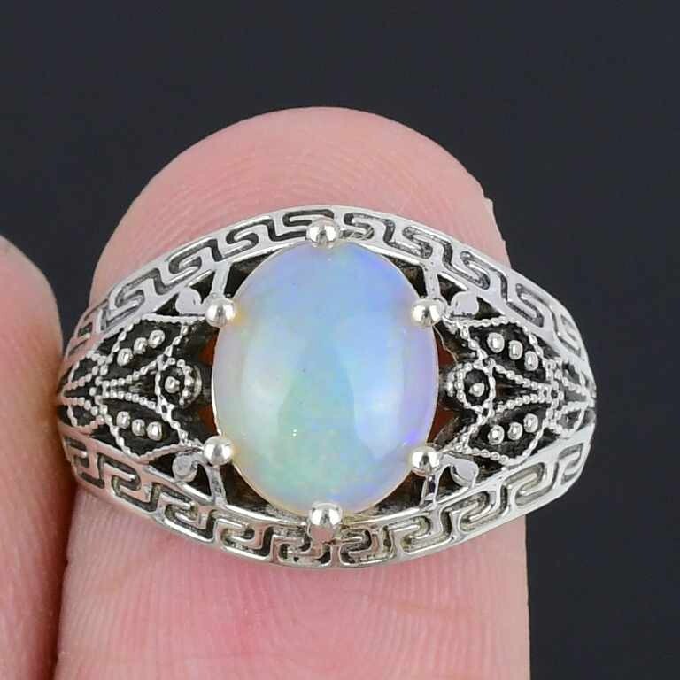 Ethiopian Opal Stone Daughter Unique Cluster Ring Jewelry Size 7 Sterling Silver