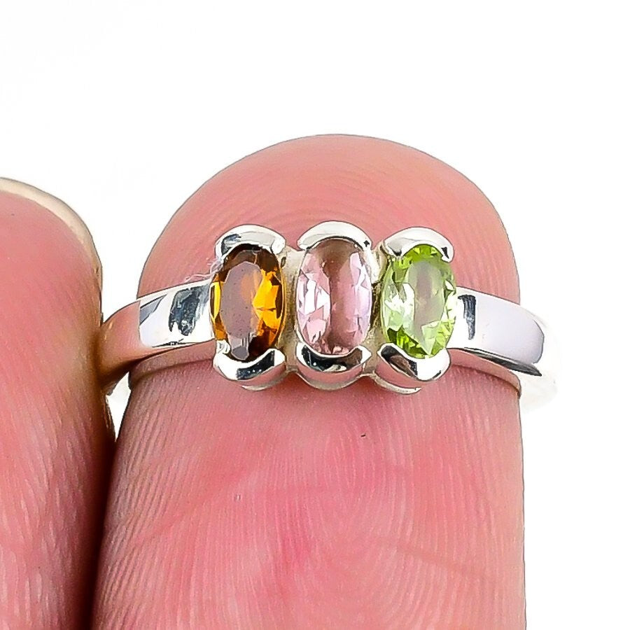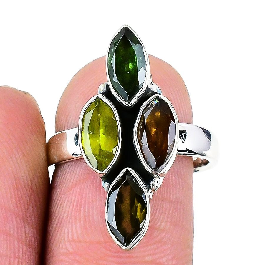 Natural Green Tourmaline 925 Sterling Silver Statement Wedding Boho Ring Size 8