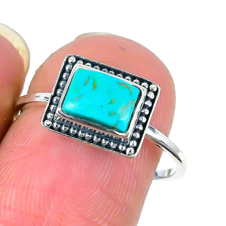Turquoise Gemstone 925 Silver Artisan Engagement Statement Trendy Ring Size 8
