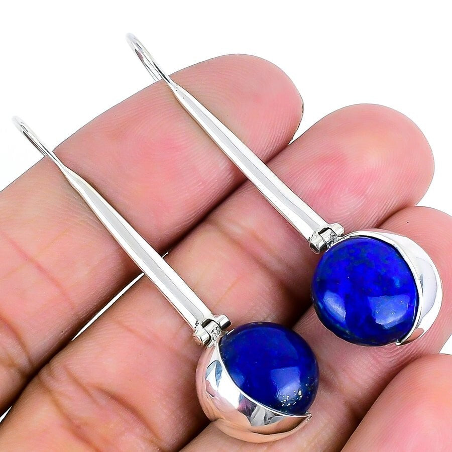 Lapis Lazuli Stone Solid Silver New Dangle September Elegant Earrings Jewelry