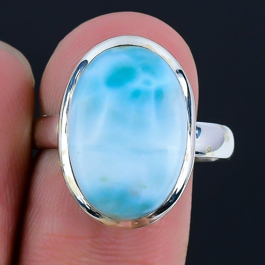 Throat Chakra Larimar Gemstone Sterling Silver Statement Engagement Ring US 9