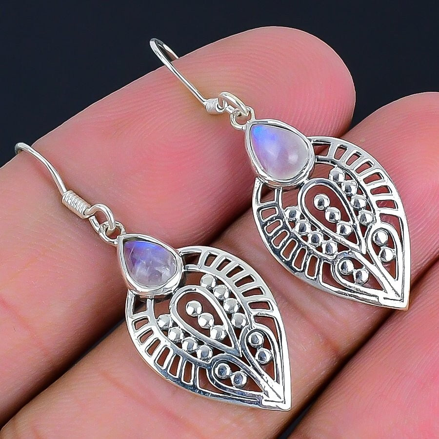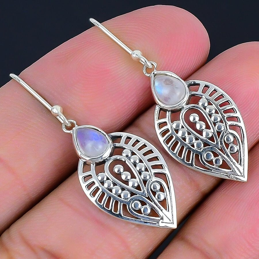 Natural Moonstone Solid Sterling Silver Artisan Dangle Drop Unique Boho Earrings