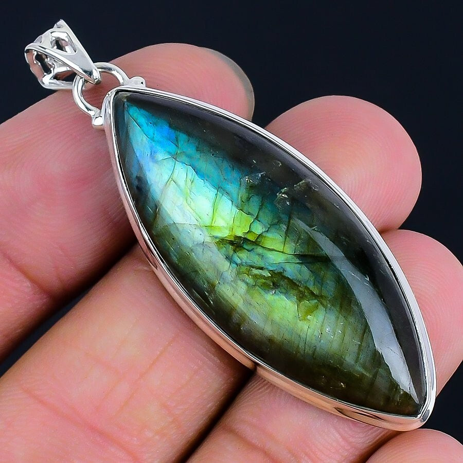 Third Eye Chakra Labradorite Stone 925 Silver Wedding Mother Bezel New Pendant
