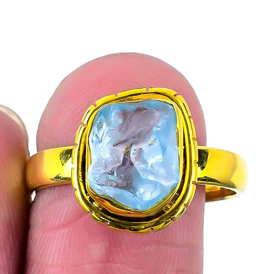 Natural Aquamarine Daughters Day Cluster Throat Chakra Ring Size 9 Solid Silver