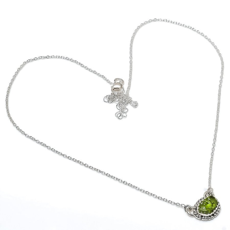 Heart Chakra Natural Peridot Birthday Chain Elegant Necklace 925 Sterling Silver