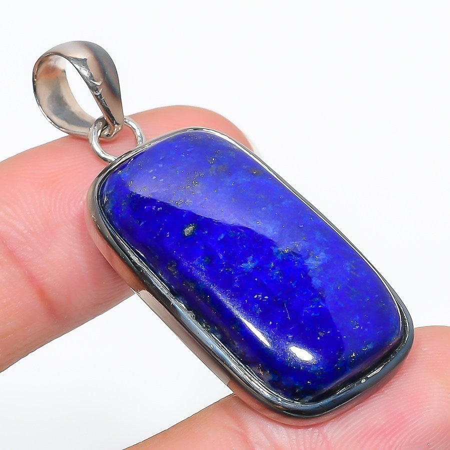 Lapis Lazuli Gemstone Birthday Mother Art Deco Boho Pendant 925 Sterling Silver