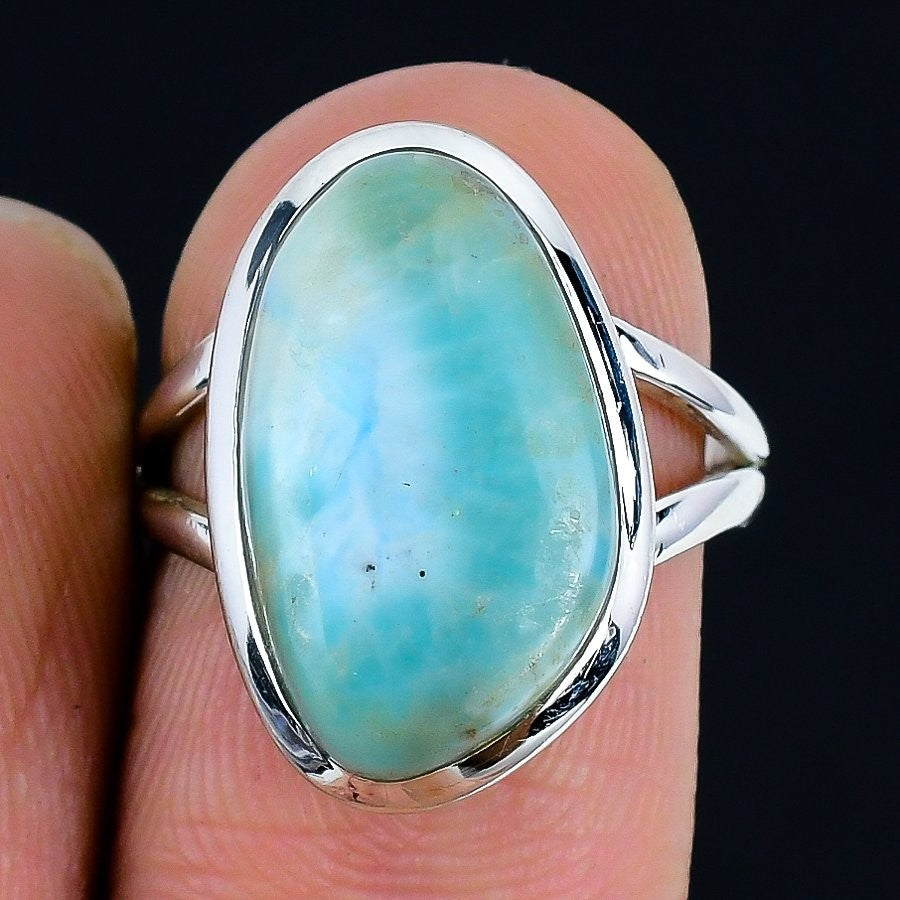 Republic Larimar Gemstone 925 Sterling Silver Artisan Statement Bezel Ring US 7