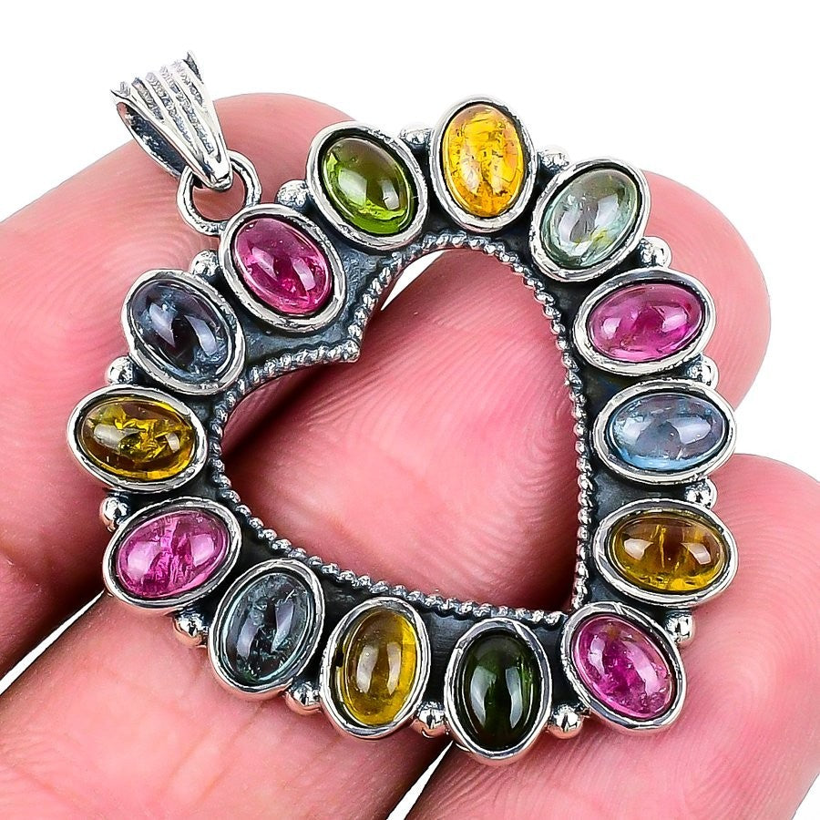 Pink Tourmaline Stone 925Ā SolidĀ Silver Heart Chakra Daughters Day Trendy Pendant